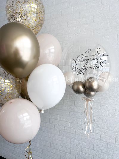 - шар баблс с мини шариками и надписью;