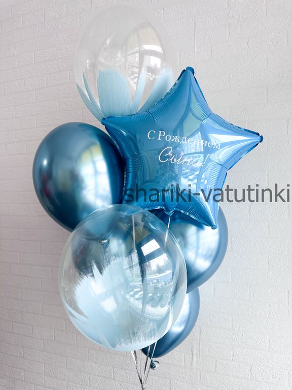 - фонтан из 9 шаров (звезда с надписью, 4 браш, 4 хром).